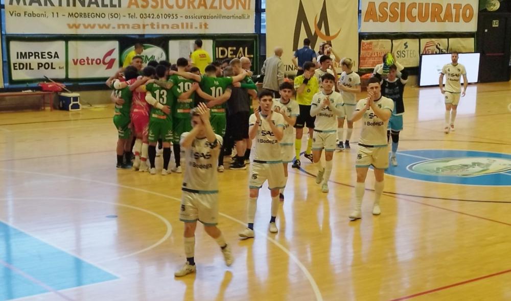 La ripresa si gioca di fatto nella metacampo reggiana. Seferi sfiora subito l'incrocio dei pali, poi Piccioni si salva a tu per tu contro Anderson Zoi, ripetendosi al 4' su Alciati prima e Seferi poi. Al 6' Seferi va al tiro centralmente e, complice una deviazione, il pallone si infila sotto la traversa. La gara si trasforma in un assedio, ma Piccioni è letteralmente mostruoso. Prima riesce a deviare sulla traversa una botta di Alciati, poi concede il bis sullo sfortunato laterale romano volando a mettere in angolo un suo tiro destinato all'incrocio. Al 15' mister Moura schiera Tortorella portiere di movimento, ma il numero 1 ospite sembra veramente insuperabile. Nulla può, però, sulla girata sotto il sette di Borolo che vale il -1 lecchese. Al 17' è Lucho a riportare la sfida in parità, sfiorando subito dopo il vantaggio, ma trovando ancora una volta il decisivo salvataggio di Piccioni. Il Lecco spinge, ma paga dazio su due palloni persi che portano al gol Ruggiero prima e Valtin Alitjaha per il 3-5 finale.
