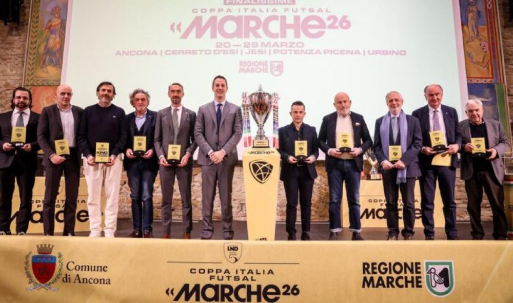 Il sipario sulla primavera dei maxi eventi del futsal italiano si è alzato nella mattinata di giovedì 12 marzo nel favoloso scenario della Mole Vanvitelliana di Ancona, sede della conferenza stampa di presentazione durante la quale sono stati sorteggiati i tabelloni di tutte le Coppe Italia maschili 2026: saranno le Marche, per la seconda stagione consecutiva, a ospitare, dal 20 al 29 marzo in cinque città diverse, le sei corse alle coccarde tricolori, svelate alla presenza delle massime autorità istituzionali e sportive del territorio.